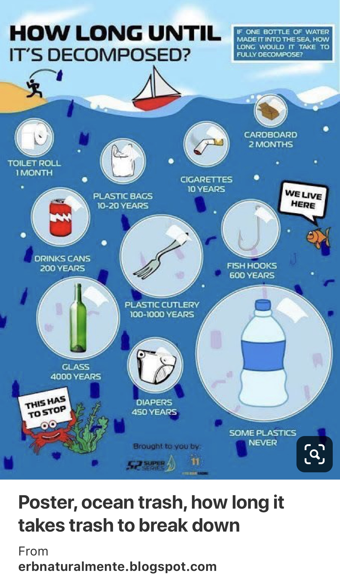 Set up recycling for your family- To begin, check out your area’s recycling rules (what and where) http://www.maine.gov/dep/waste/recycle/whatcanirecycle.html At first, recycling can seem a bit overwhelming. Learning what goes where and creating a recycling center in your home would leave no excuses for each family member to get on board. If convincing is still needed, take a look at a visual of how long it takes trash to decompose. Can be quite startling, yikes!